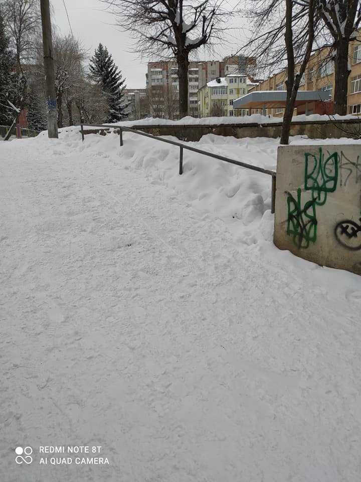 Він знаходиться біля 82 школи і тротуари біля нього не чистять від снігу.