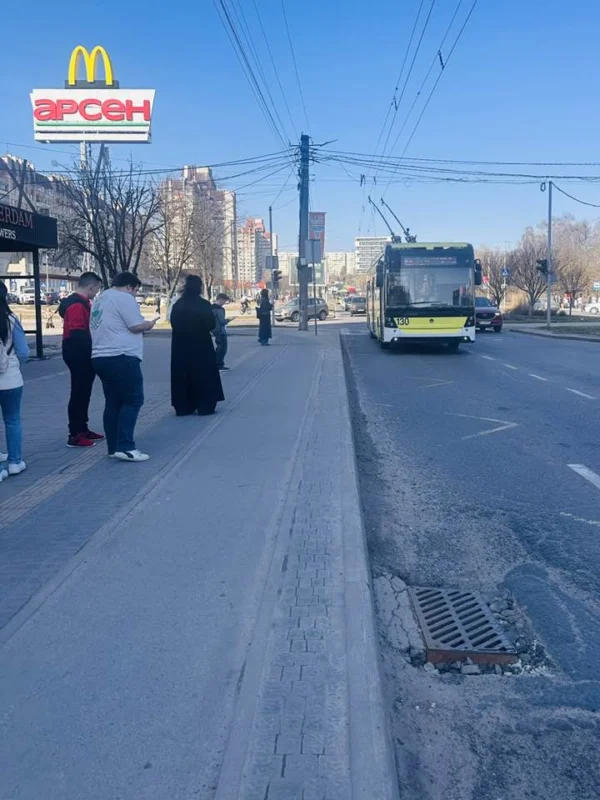 “Діра, що може провалитись нога, глибиною до метра, на зупинці громадського транспорту на проспекті Чорновола «Арсен».