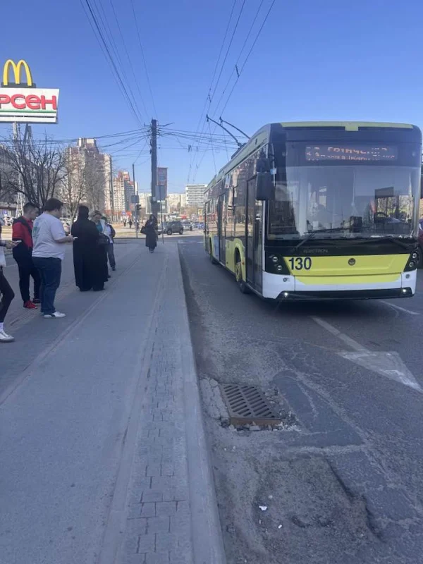 “Діра, що може провалитись нога, глибиною до метра, на зупинці громадського транспорту на проспекті Чорновола «Арсен».