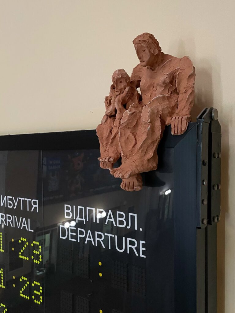 На табло львівського вокзалу з’явилася скульптура пари людей, що зустрічаються, та пари, що очікують під назвою «Радість»