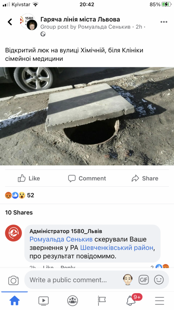 - Відкритий люк на Хімічній. Фото Гаряча лінія міста Львова