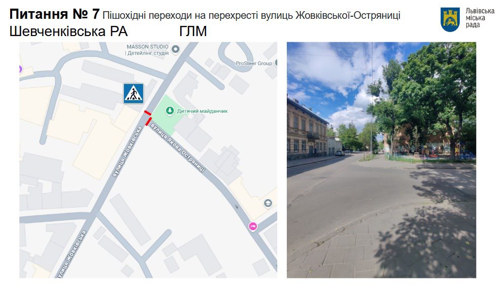 На перехресті з’являться два пішохідні переходи. Поруч розташований дитячий майданчик, тож це рішення спрямоване насамперед на безпеку пішоходів.
