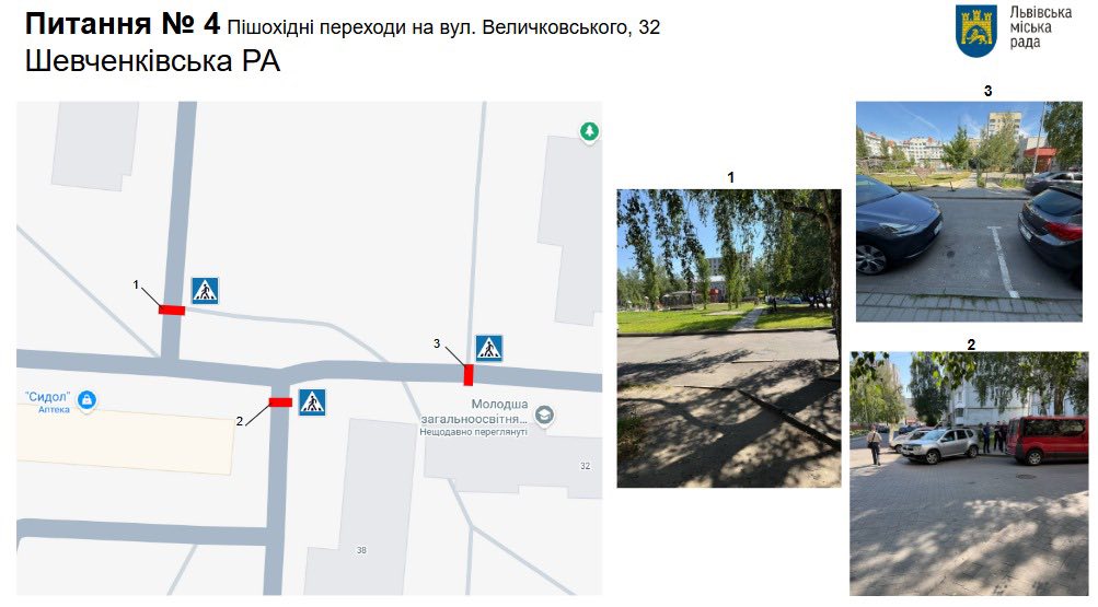 Поруч із навчальним закладом облаштують три пішохідні переходи: понизять бордюри та нанесуть дорожню розмітку. Це зробить перехід дороги зручнішим і безпечнішим для дітей та інших пішоходів.
