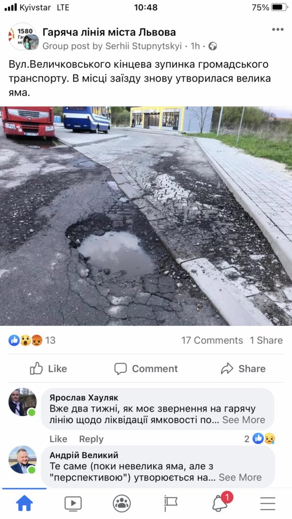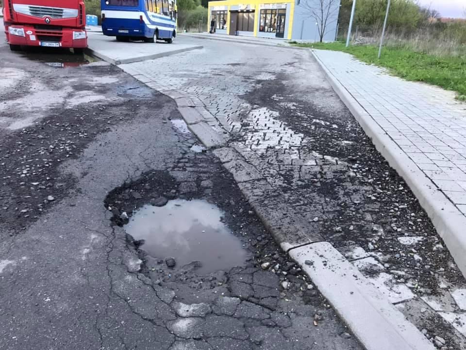 У Львові на вулиці Величковського на кінцевій зупинці громадського транспорту утворилась велика яма.