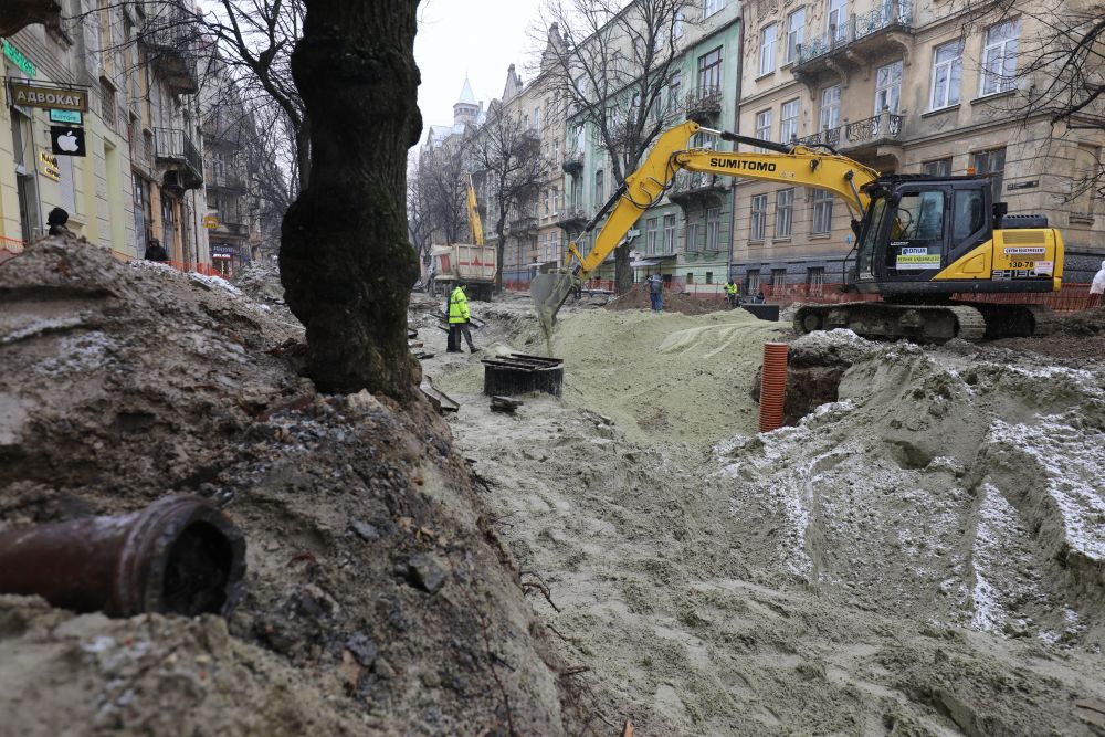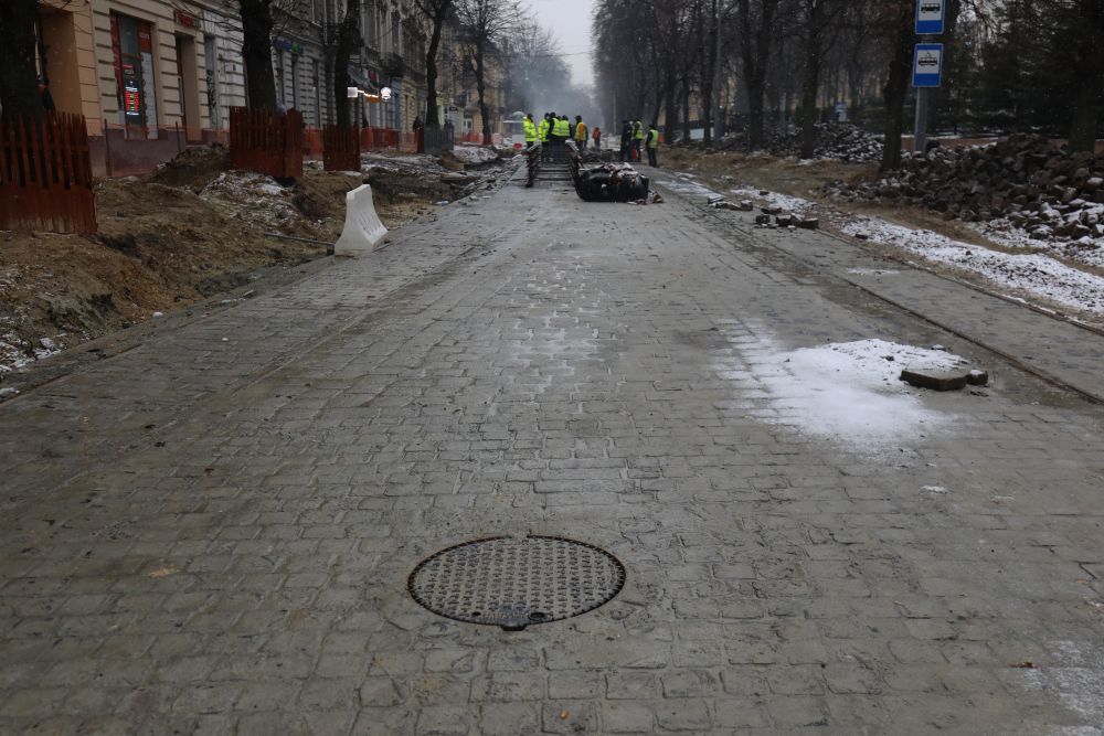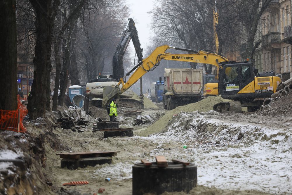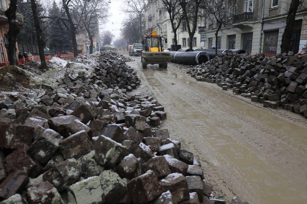 «Роботи йдуть повним темпом. Маємо 50 робітників, 20 одиниць техніки. Станом на сьогодні фактично водогоном ми дійшли до вул. Антоновича. Колектор вже проклали до вул. Коновальця. Зараз також вже стелять бруківку. Бруківка вся збережена. Підрядна організація чітко моніторить погодні умови, що і в яку погоду можна робити. Прокладання колектора взимку — це набагато безпечніше, ніж влітку.