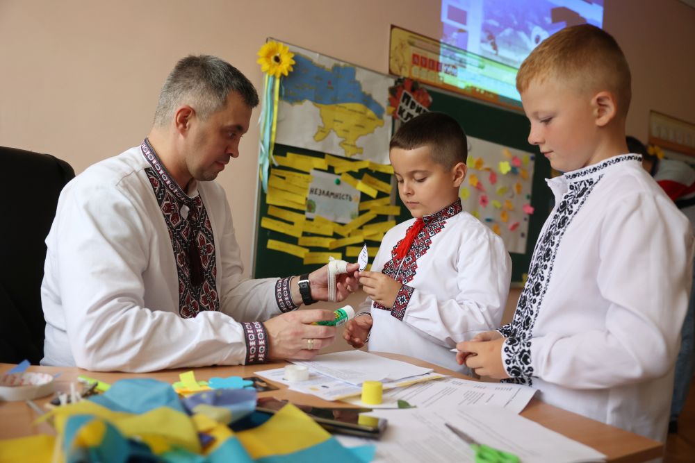 «Ми мали з дітками Перший незламний урок. Розмова з паном Михайлом, який сьогодні прийшов до нас в гості, була такою легкою, невимушеною і позитивною, що діти дуже багато усміхались, були розкутими та допитливими.
