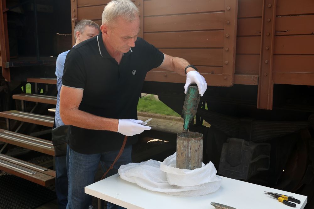 Керівник Меморіально-пошукового центру «Доля» Святослав Шеремета уточнив, що капсула була віднайдена у третій братській могилі, фактично під самим верхом.