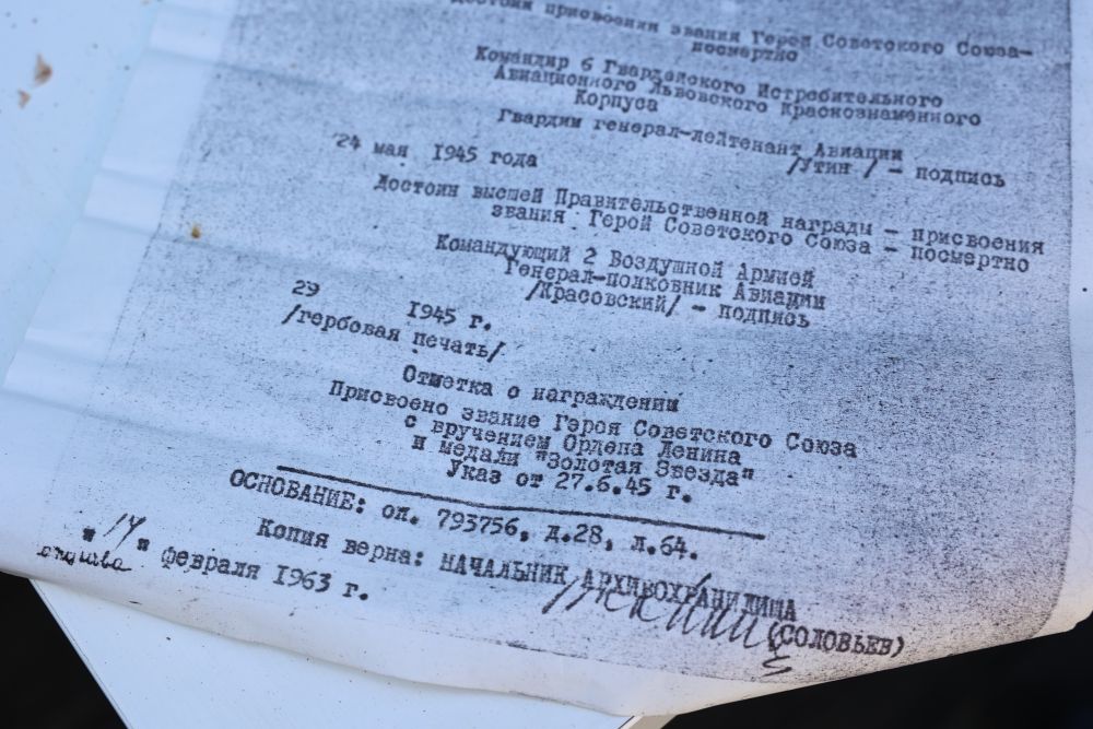 Під час робіт з дослідження ексгумації радянських поховань на колишньому Пагорбі Слави у Львові знайшли «капсулу часу». Сьогодні у музеї «Територія терору» фахівці відкрили цю металеву ємність. Усередині була скляна пляшка, а у ній – нагородний лист військового льотчика, героя радянського союзу Михайла Лиховида. Інформація про бойовий шлях загиблого розміщена на трьох аркушах.