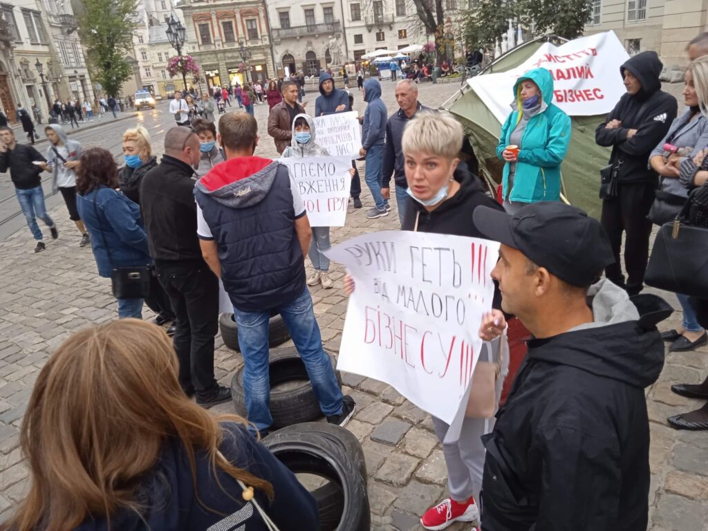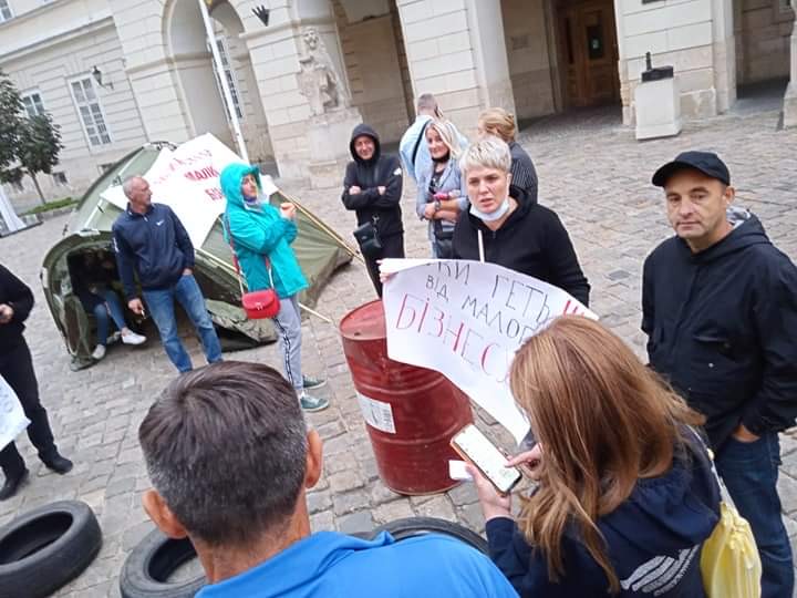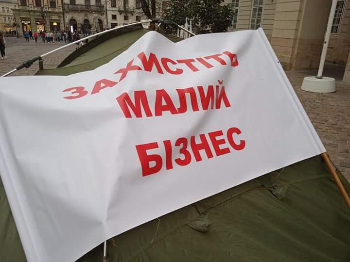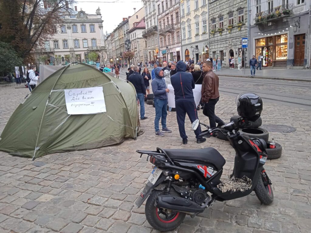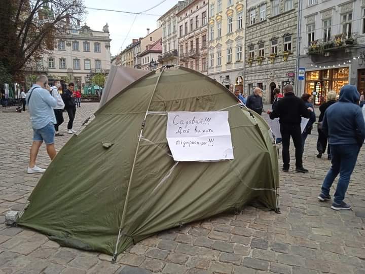 Намети встановили підприємці, які вимагають справедливого рішення міської ради Львова щодо малого та середнього бізнесу.