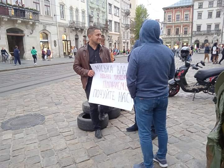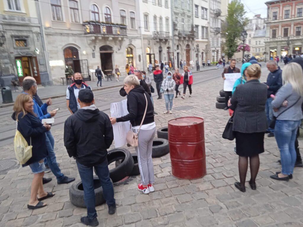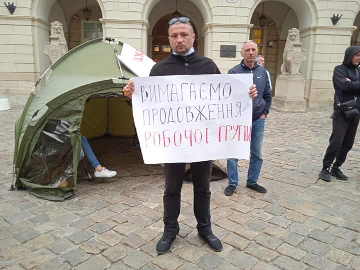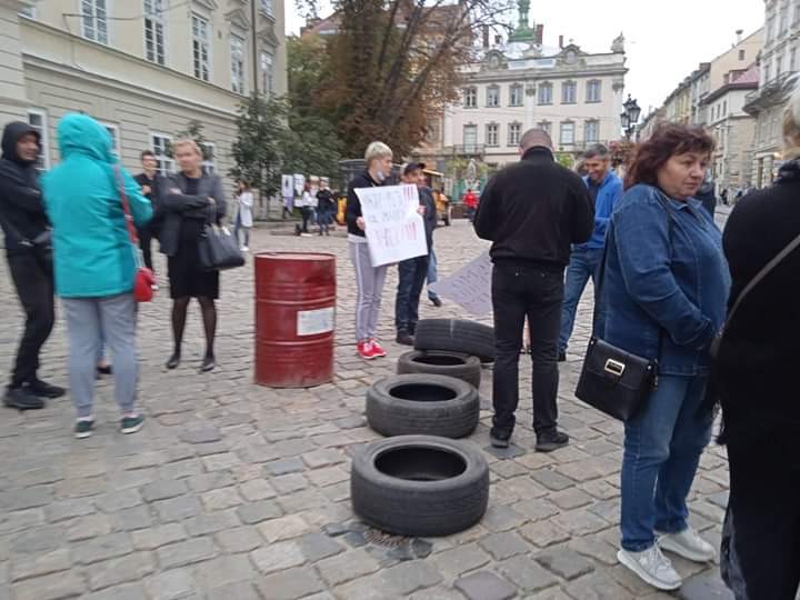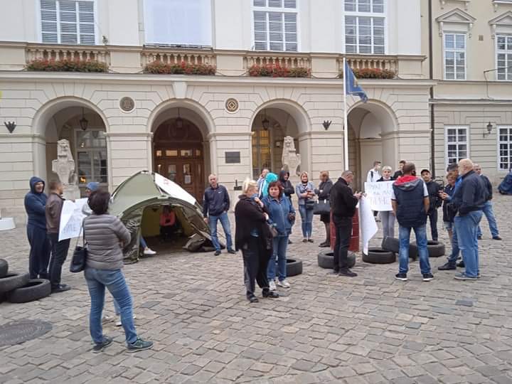 У Львові під стінами міської ради встановили палаткове містечко та принесли шини.