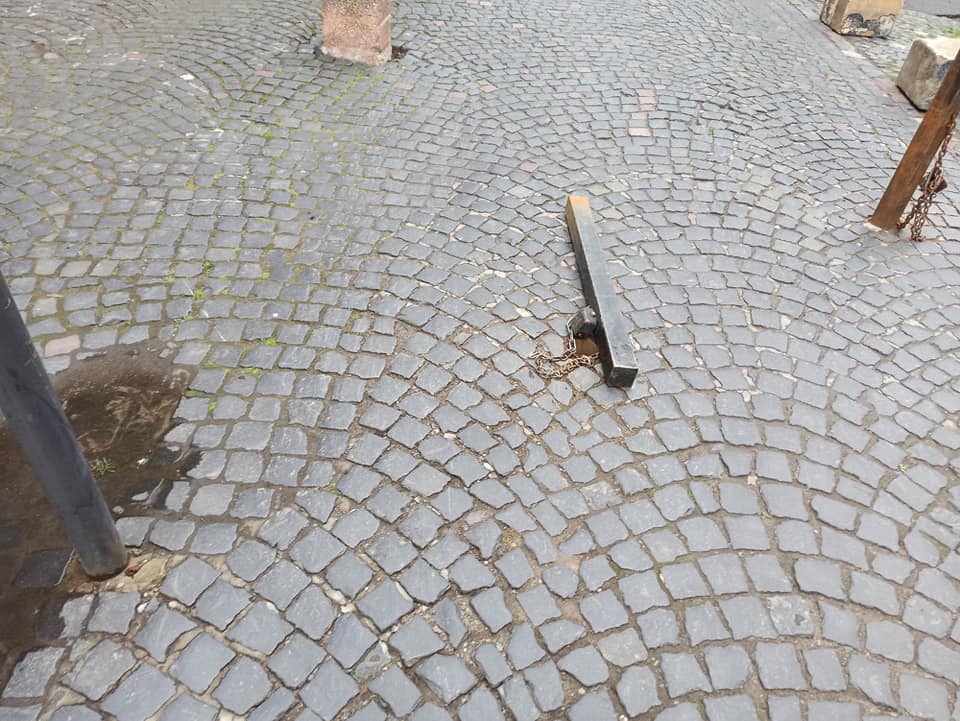 “Стовпчик біля монастиря Бернардинців виламали, зразу до пам’ятки заїхали машини, прошу встановити кращий стовпчик”, – йдеться у повідомленні.
