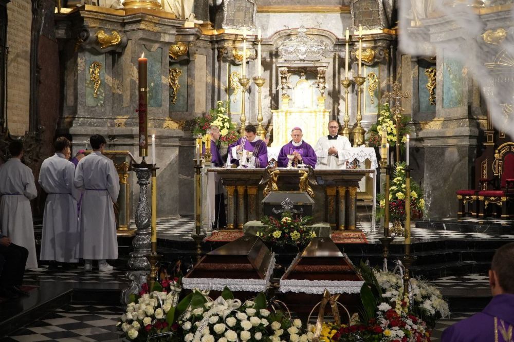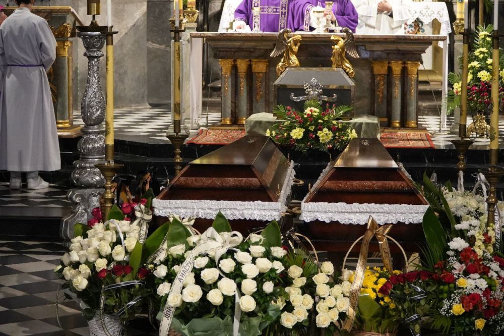 Львівська громада попрощалася з Анастасією Сенів та Мирославою Садовою, які загинули внаслідок ракетного удару росіян по житлових будинках у Львові. Чин похорону відбувався у Латинському катедральному соборі.