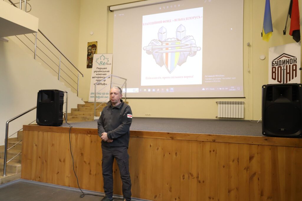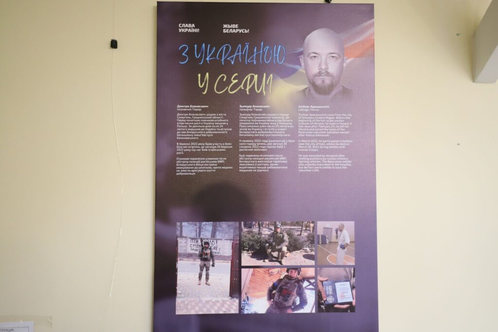 «З 2014 року білоруські воїни також віддають життя у боях за Українську незалежність, за демократичні цінності. Інформація про них в основі експонатів виставки «З Україною в серці». Загалом нам відомо про понад 30 загиблих на фронті білорусів. Ми збираємо про них інформацію, спілкуємося з родичами загиблих та полонених. Важливо, щоб усі люди розуміли, що є велика різниця між білорусами і «лукашистами». Ми віримо, що з’явиться вікно можливостей для деокупації Білорусі і тоді будемо разом будувати свою вільну, незалежну країну», – розповів Олексій Францкевич.