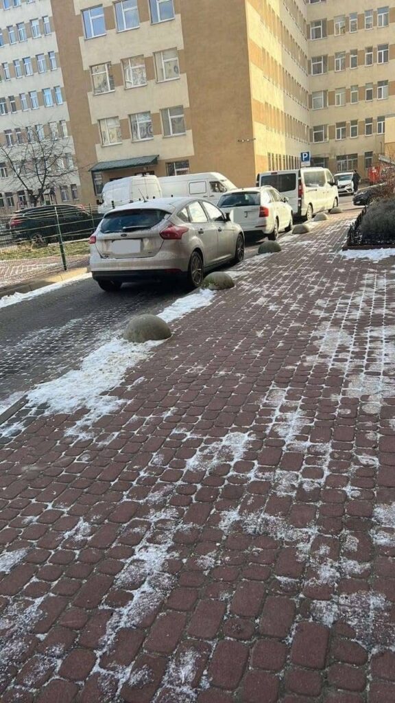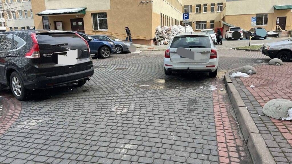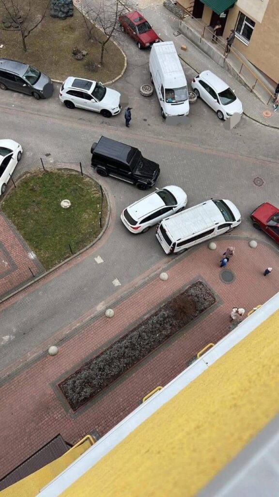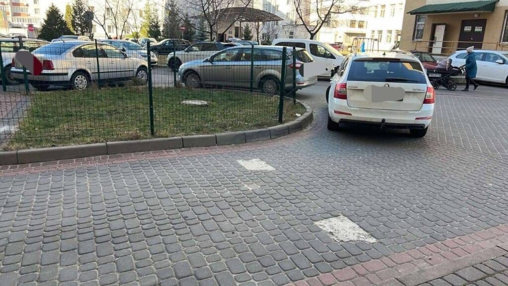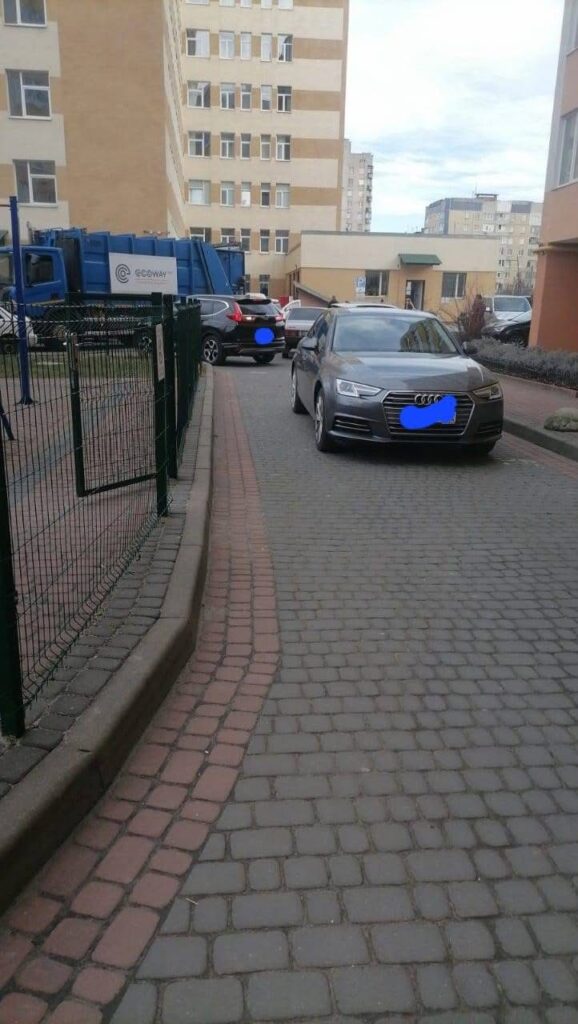 Мінімальні правила парковки у людей відсутні, паркують автомобілі по правилу «де хочу там стою», блокують виїзди з усіх сторін будинку, заїжджають на тротуари де знаходяться кулі.