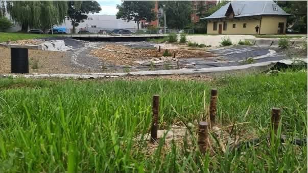 Робота над громадським простором вже понад два роки перебуває на паузі. Елементи реконструкції, що встигли зробити, поступово руйнуються, а також незавершені конструкції з дротів та елементів арматури є небезпечними для мешканців.
