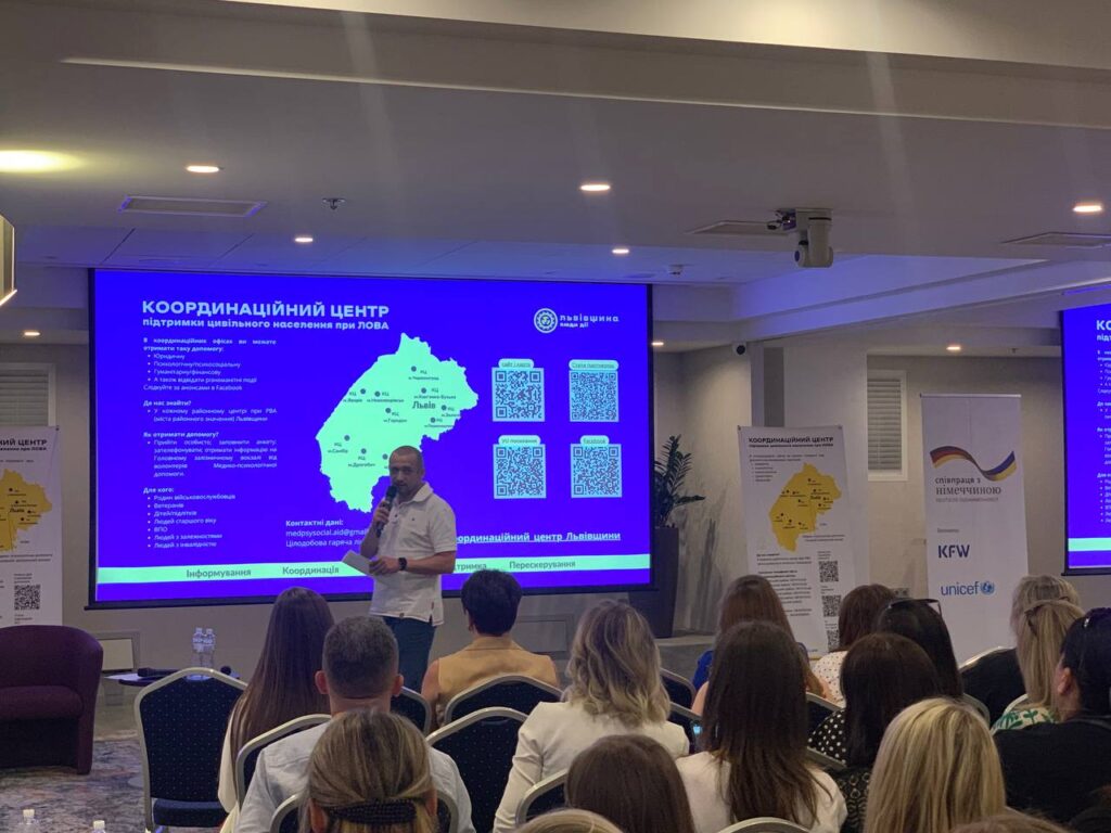 Голова Координаційного центру при ЛОВА, радниця голови ЛОВА Максима Козицького Бордун Галина окреслила план заходу у контексті Комплексної програми психічного здоров‘я та психосоціальної підтримки цивільного населення у Львівській області на 2023-2026 рік.
