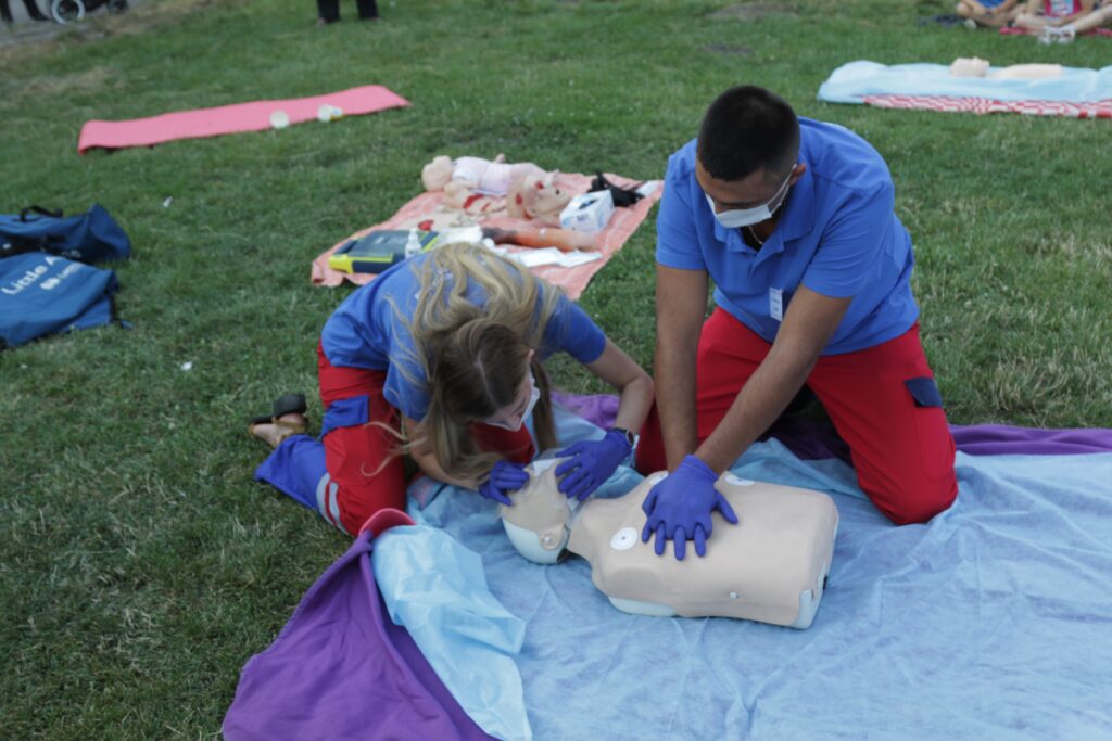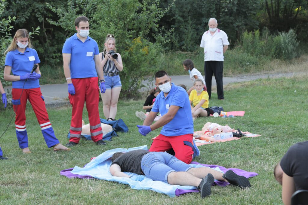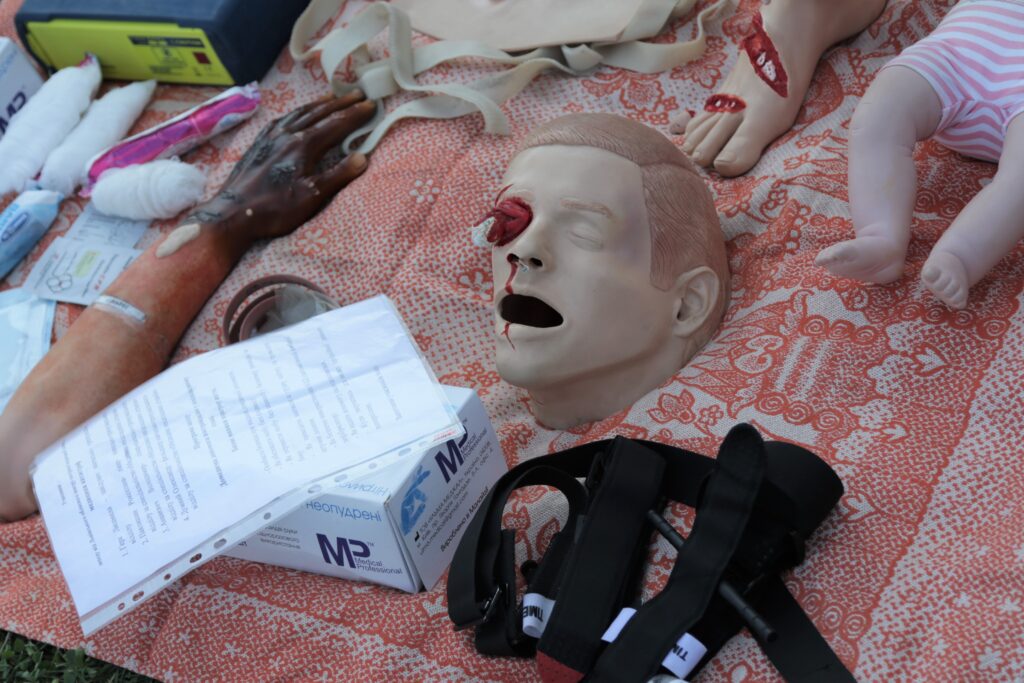 Медики показали усім охочим, як поводитись, коли побачили непритомну людину або ж якщо хтось подавився та інше. Після короткої теорії усі практикувалмсь на манекенах.