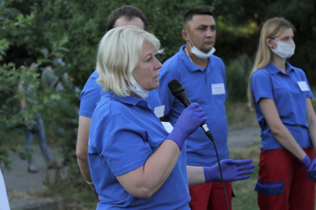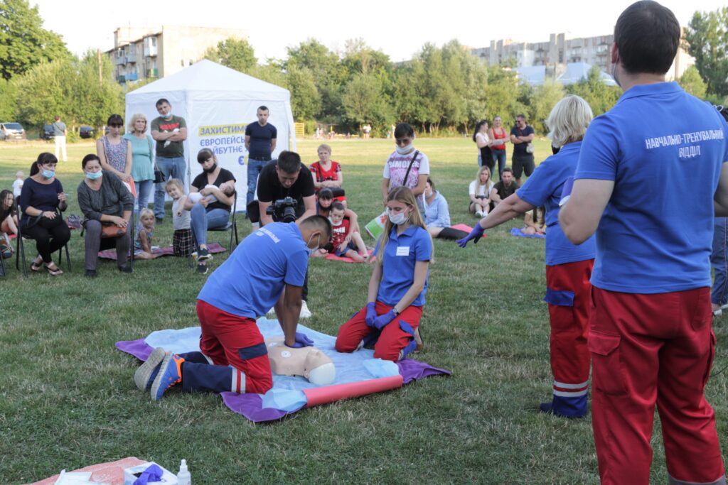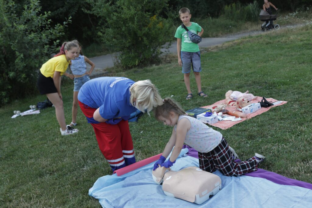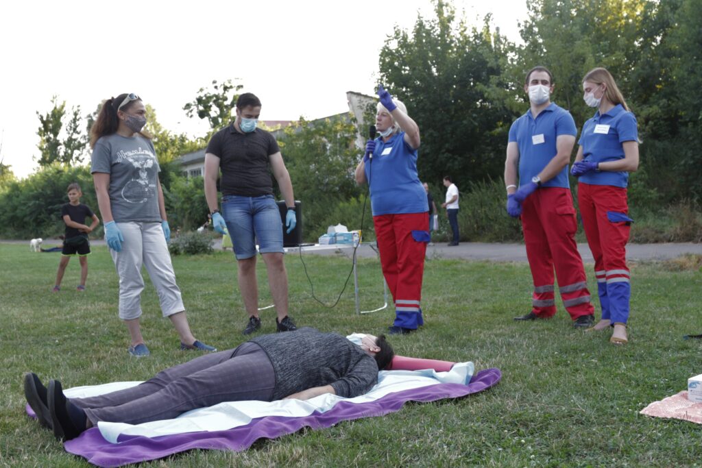 На стадіоні “Торпедо” просто неба лікарі пояснювали ази надання домедичної допомоги