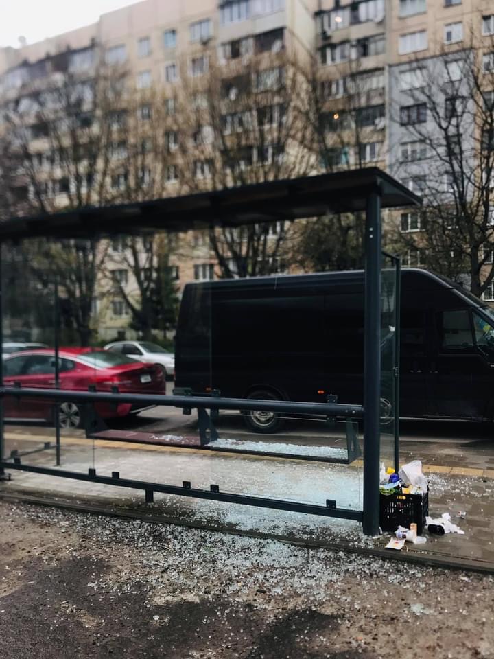 У Львові розбили скло на зупинці у спальному районі (ФОТО)