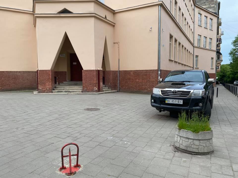 - У Львові школа встановила обмежувач для паркування автомобілів, фото Гаряча лінія міста Львова