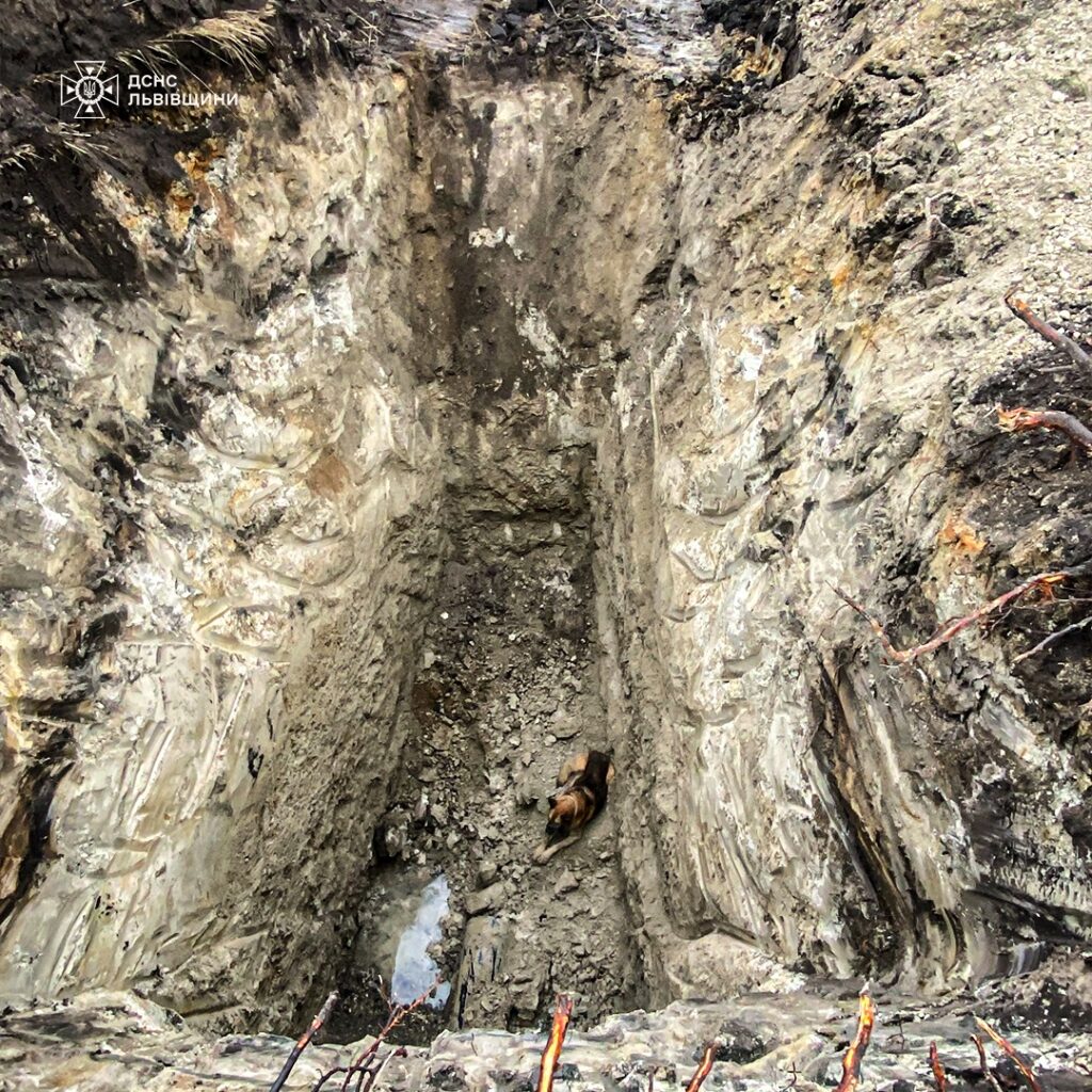 Вчора пообіді на вулиці Пластовій у Львові перехожі почули жалібний гавкіт. Звук долинав із глибокої ями на відкритій території. Коли люди зазирнули всередину, побачили переляканого собаку, який кликав на допомогу.