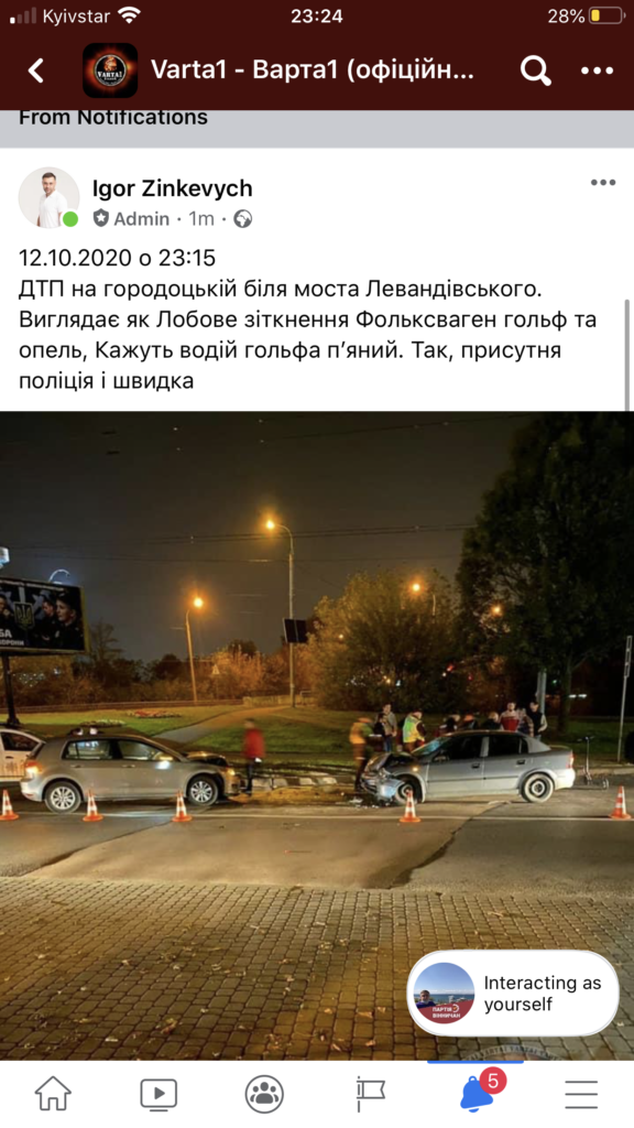 «Виглядає як Лобове зіткнення Фольксваген гольф та опель», – йдеться у повідомленні.