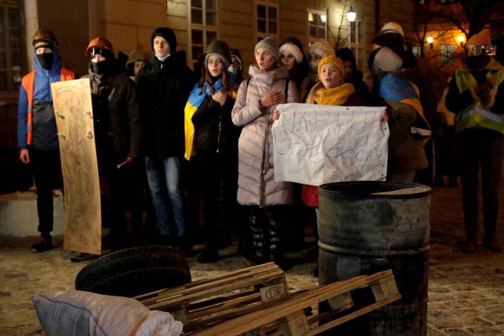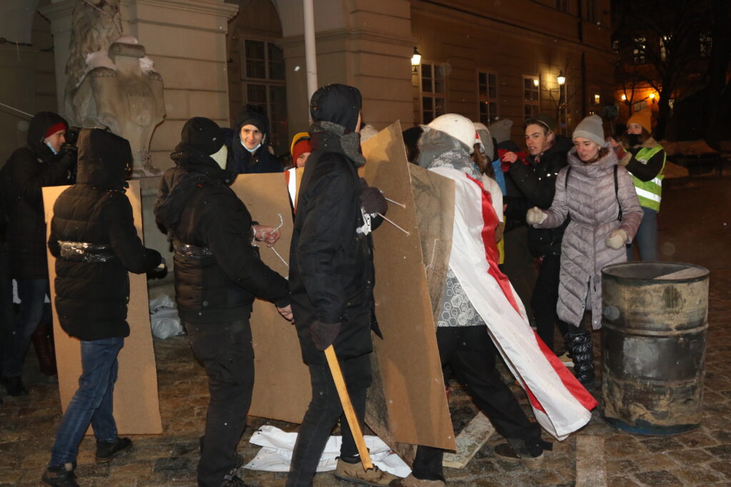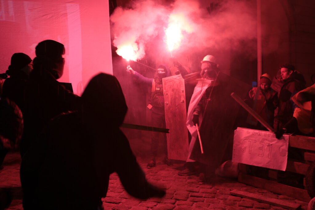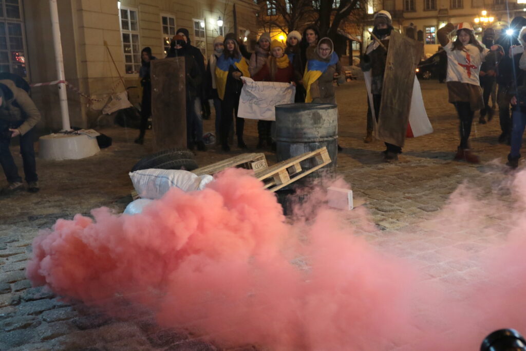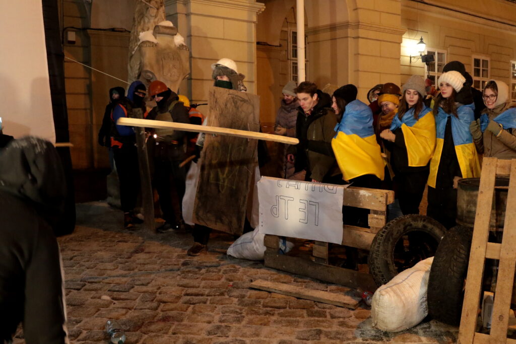 Близько 40 волонтерів відтворювали події 2014 року, коли після тривалих перепалок мітингарів відтіснили на Майдан і в ніч із 18 на 19 лютого розпочався штурм — силовики напали на мітингарів.