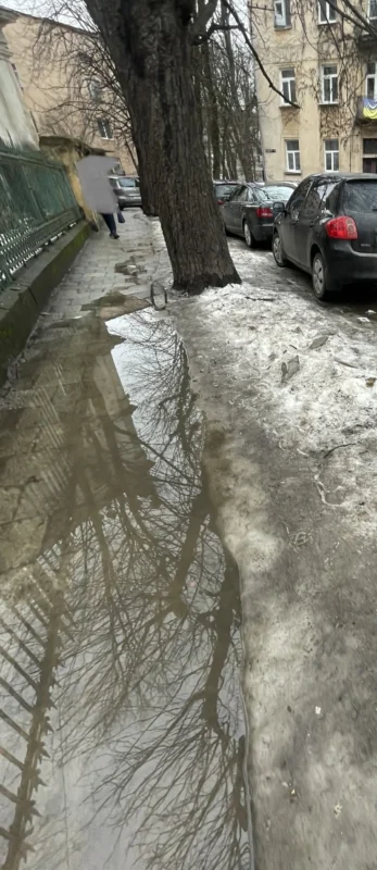 “Шлях від військового госпіталю до центрального входу на територію Львівської обласної клінічної лікарні вкритий непрохідними калюжами через неприбраний і невивезений з вул. Ю. Руфа сніг”, – йдеться у повідомленні.