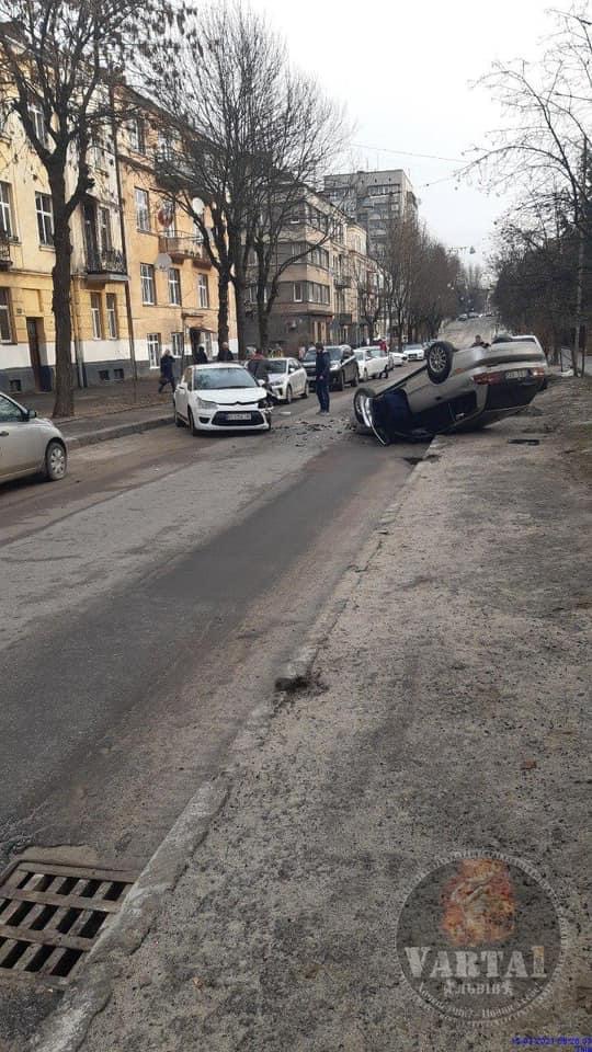 У Львові на вулиці Чупринки перекинувся автомобіль.
