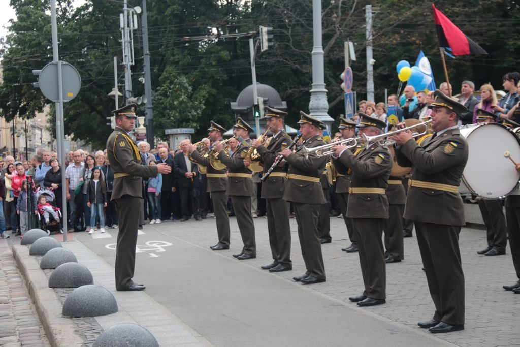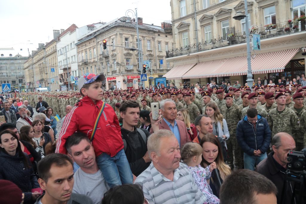 Військовослужбовці пройшли урочистою ходою від місця розташування 80-ї окремої десантно-штурмової бригади за маршрутом: вул. Стрийська – вул. Героїв Майдану – вул. Сахарова – вул. Коперника – просп. Свободи.