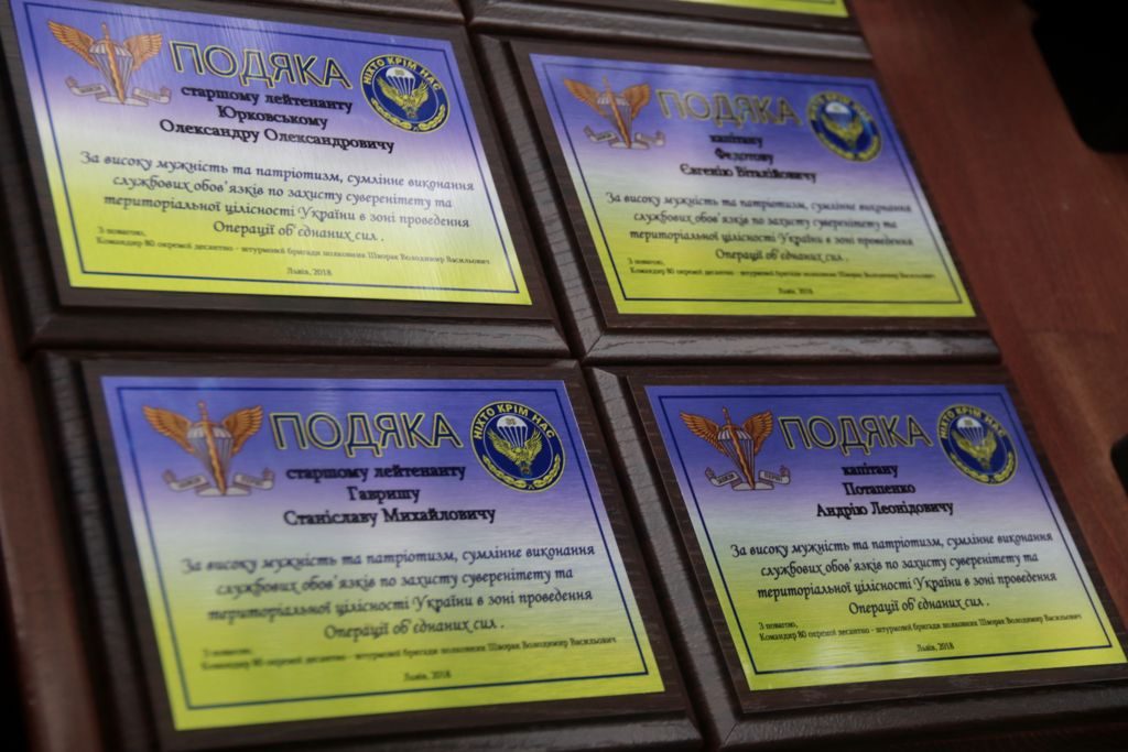 «Це краща бригада,немає на лінії фронту гарячої точки, де б військовослужбовці не виконували бойові завдання. Донецький, Луганський, Краматорський аеропорти, Дебальцеве, Кримське, Щастя, станиця Луганська та інші місця, де бригада гідно виконала свої завдання. Так, ціною втрат, на сьогодні 105 воїнів не повернули додому. Ціною власного життя тих воїнів лінія фронту проходить там, де вона є на сьогодні і це заслуга бригади. Від імені Міністра оборони, начальника Генерального штабу, командувача десантно-штурмових військ, я вдячний кожному солдату, кожному офіцеру, сержанту за блискуче виконання завдань. Це мужні безстрашні воїни, для них немає задач, які неможливо виконати. На жаль, не вся робота зроблена, допоки нога окупанта на нашій землі нам діти, онуки, не пробачать, якщо ми не переможемо», – наголосив генерал Збройних Сил України, Герой України Андрій Ковальчук.