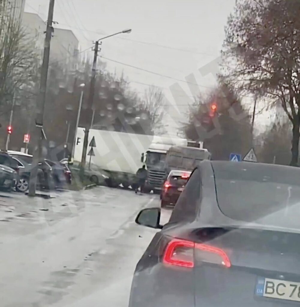 “Відео з місця події сьогоднішньої ДТП (11.12.2025 р.) за участі вантажівки та легковика на перехресті вулиць Тролейбусної та Наукової у м. Львові”, – йдеться у повідомленні.