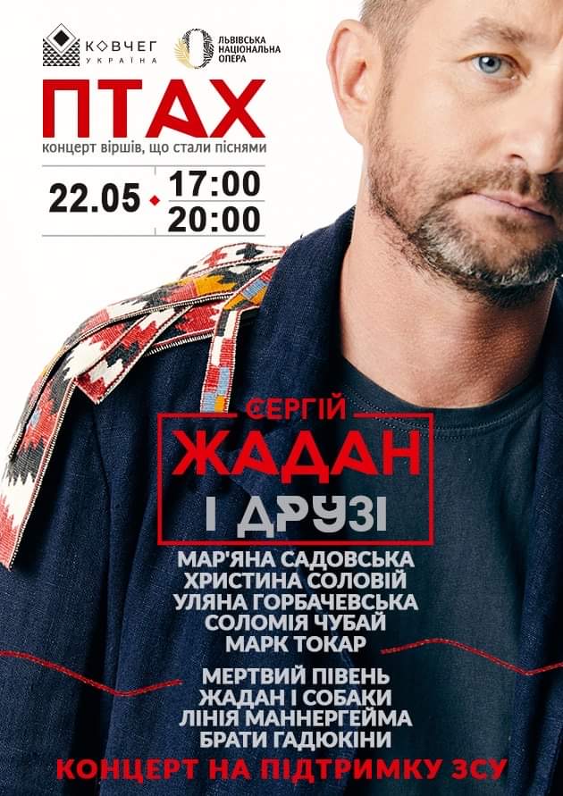 Сергій Жадан і культурна платформа «Ковчег «Україна» скликають друзів на «ковчег Жадана» – 22 травня у Львівській національній опері відбудеться концерт відомих львівських музикантів, що виконують пісні на вірші Сергія Жадана (початок о 17:00 та 20:00).