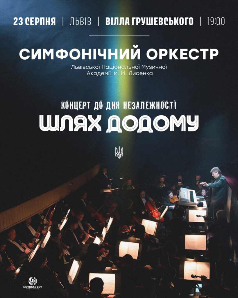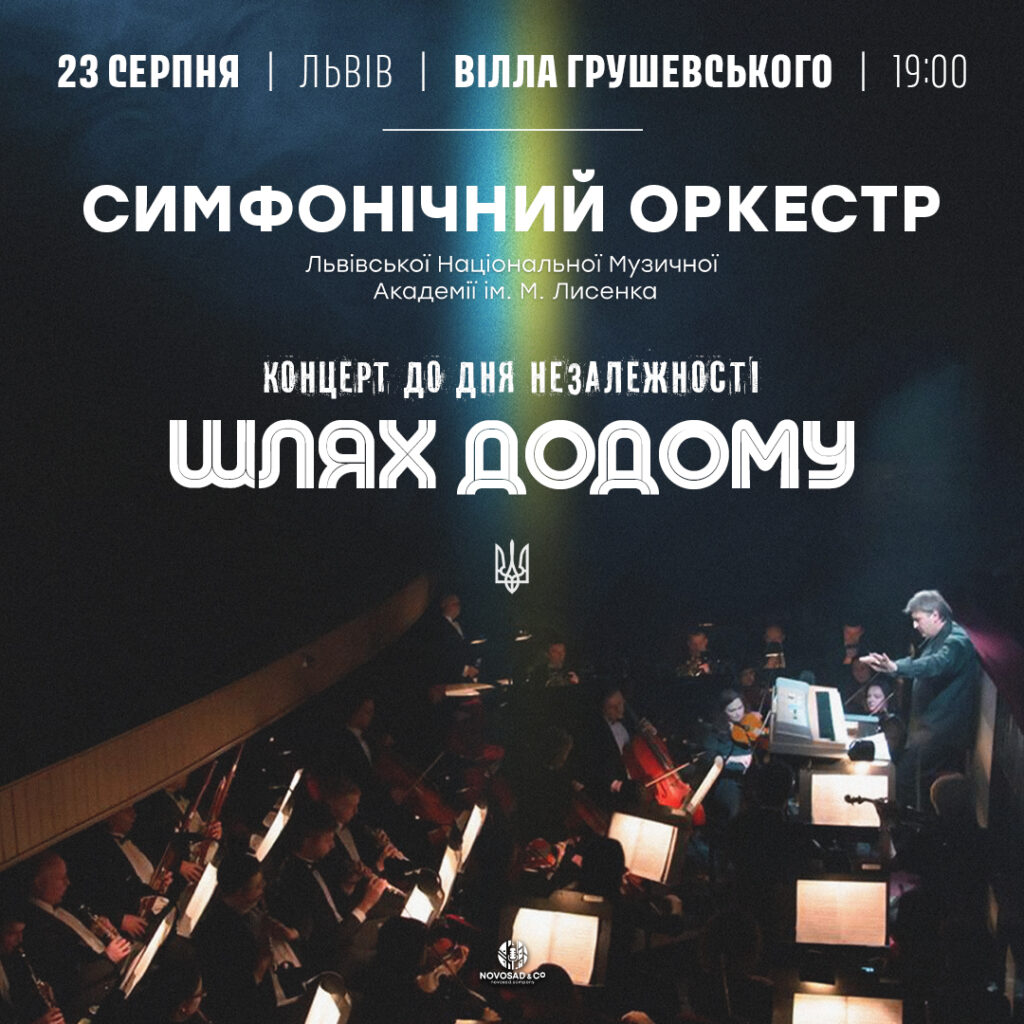 У суботу, 23 серпня, в День українського прапора, напередодні Дня Незалежності України, в унікальній львівській локації просто неба — на Віллі Грушевського (вул. Івана Франка, 154) — відбудеться концерт українських та світових хітів у виконанні симфонічного оркестру під назвою «Шлях додому». Початок ексклюзивного вечора музики — о 19:00.