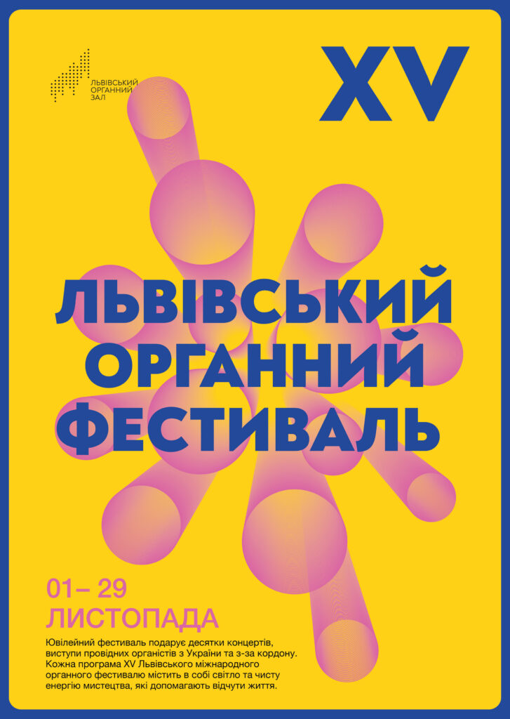 Від 1 до 29 листопада у Львівському органному залі (вул. С. Бандери, 8) відбуватиметься ювілейний XV Львівський міжнародний органний фестиваль. Гасло цьогорічного фестивалю – “Музика, що дарує світло і натхнення”. Відбудеться 18 концертів за участі 13 органістів з України та інших країн. Серед подій – великі симфонічні прем’єри, унікальні поєднання органа з іншими інструментами, відеоартом та електронною музикою.