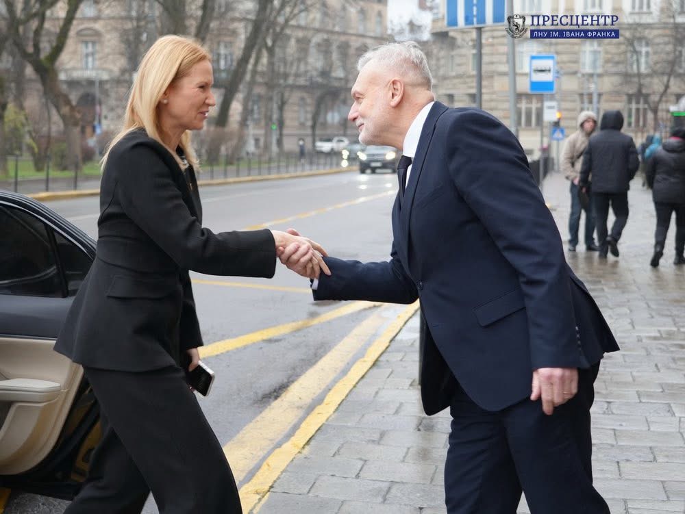Перед початком Сесії Олена Кондратюк та Моніка Веліховська поспілкувалися з Ректором Львівського університету академіком НАН України, професором Романом Гладишевським. Темою для обговорення стало поглиблення співпраці між академічними центрами України та Польщі, перспективи розвитку української освіти в умовах війни, а також спільні ініціативи на благо посилення партнерства між державами у науковому та суспільному аспектах задля розбудови сильної та мирної Європи.
