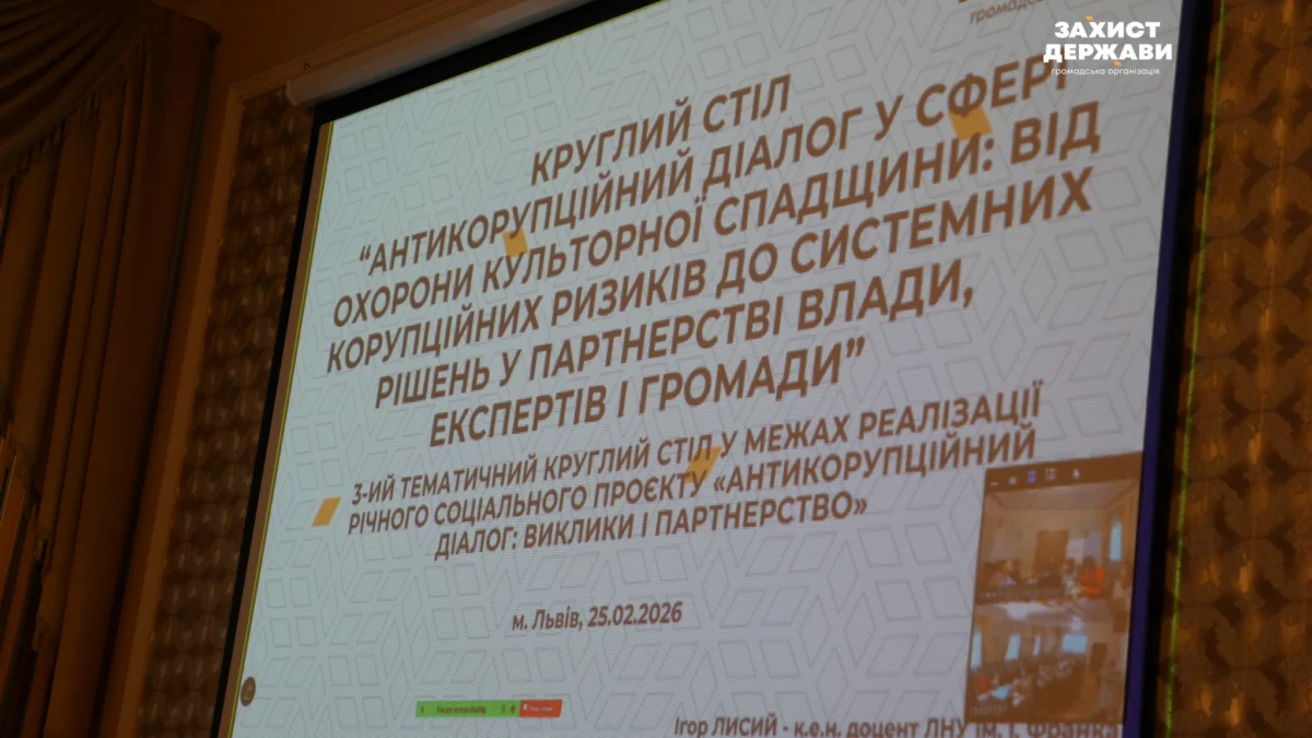 У Львові відбувся третій антикорупційний круглий стіл у межах проєкту «Антикорупційний діалог: виклики і партнерство», який реалізує Львівський відокремлений підрозділ ГО «Захист держави». Цього разу обговорення присвятили сфері охорони культурної спадщини – напрямку, де питання збереження пам’яток часто перетинається з містобудуванням, земельними відносинами та управлінням майном.