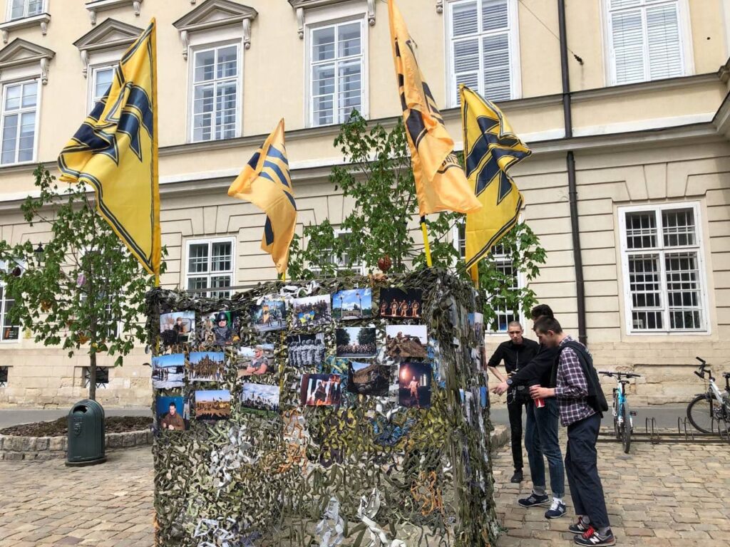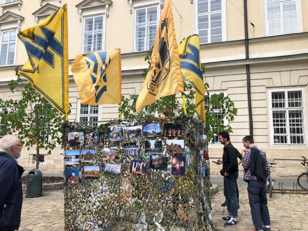 Упродовж дня на площі Ринок діяла інсталяція з фотографіями азовців і полковим прапором.