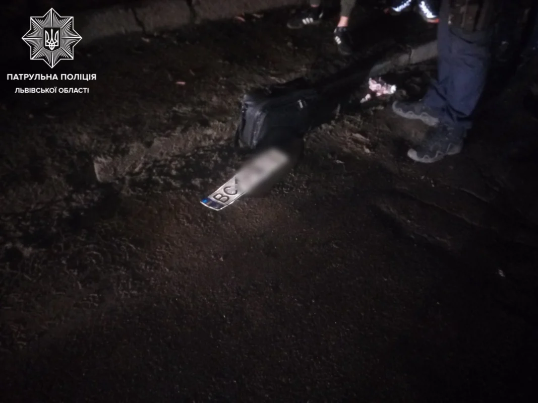 Позаминулої нічної зміни патрульні отримали виклик про наїзд на пішохода на вулиці Ряшівській. Водій автомобіля BMW Х1 поїхав з місця події, загубивши номерний знак.