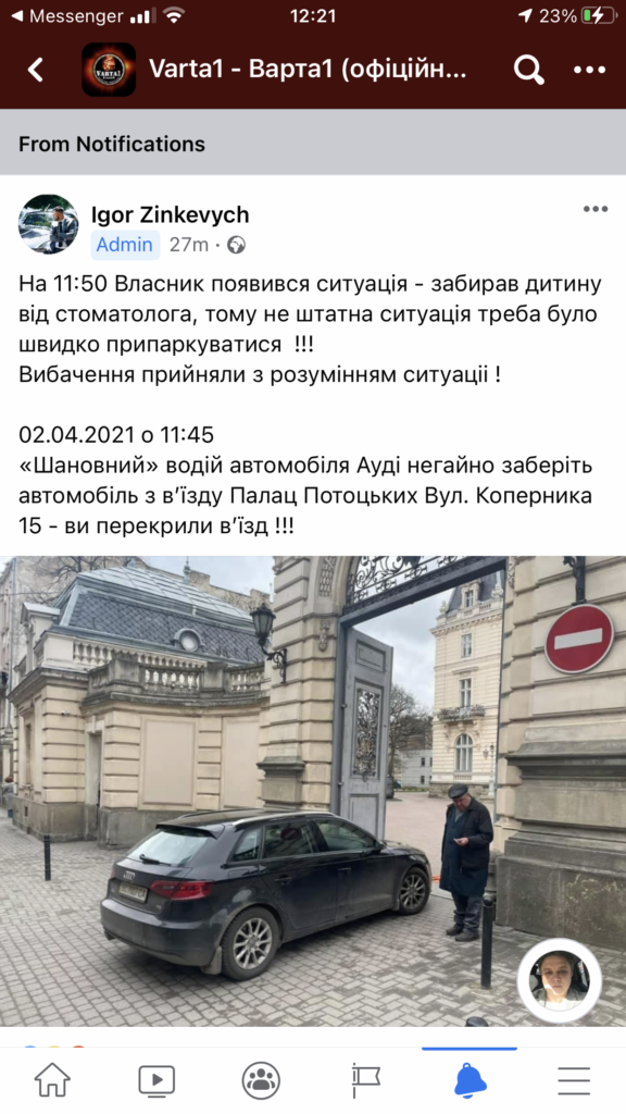 Позначки: Зінкевич, палац потоцьких, паркування