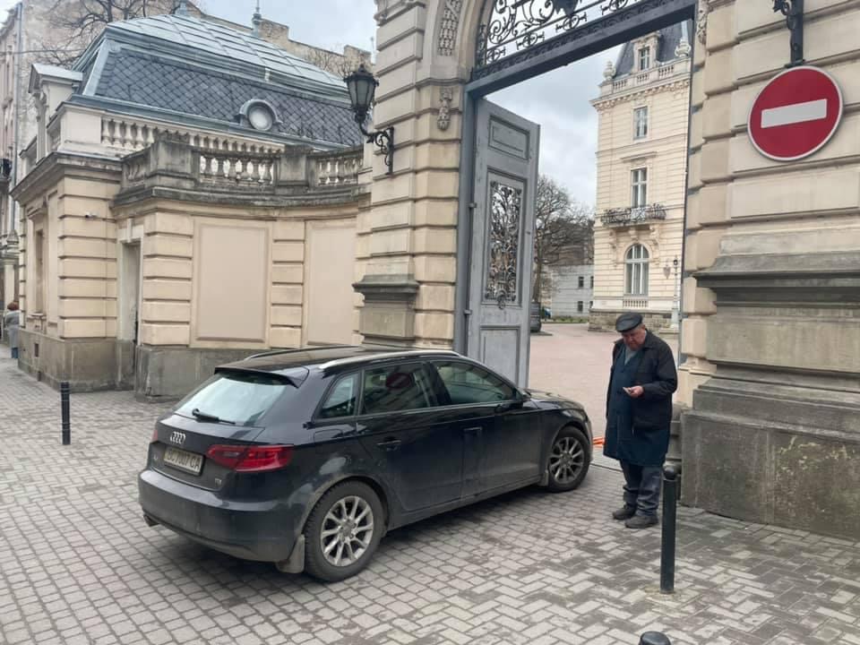 У Львові водій припаркувався біля Палацу Потоцьких.