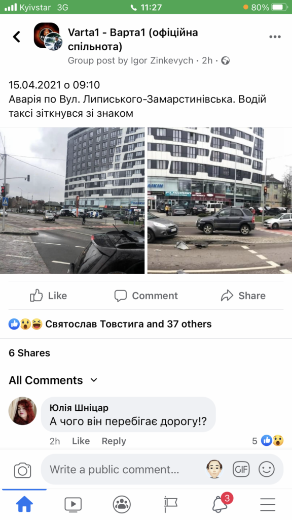 «15.04.2021 о 09:10 Аварія по Вул. Липиського-Замарстинівська. Водій таксі зіткнувся зі знаком», – йдеться у повідомленні.