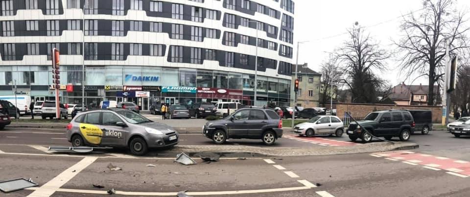 У Львові водій таксі влетів у знак.