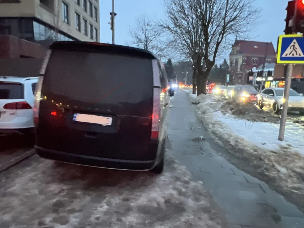 “автомобілі остаточно знесли 2 стовпчики антипаркувальні. Прохання відновити і убезпечити тротуар і пішохідний перехід від паркування авто на тротуарі.