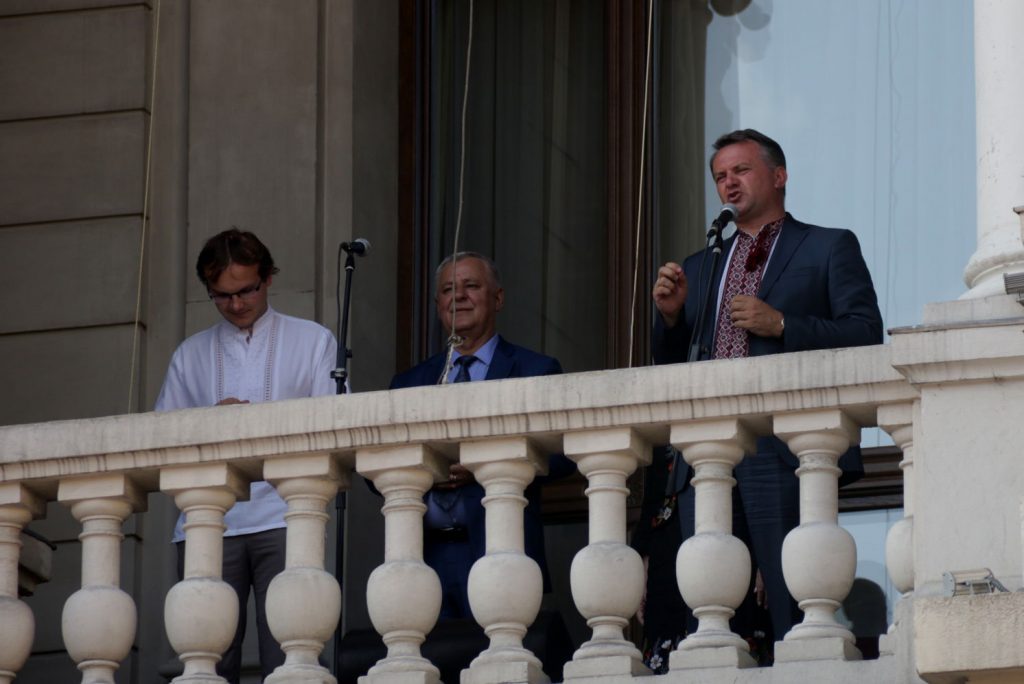 З вітальним словом з балкона Львівської опери до усіх присутніх звернувся голова Львівської ОДА Олег Синютка: