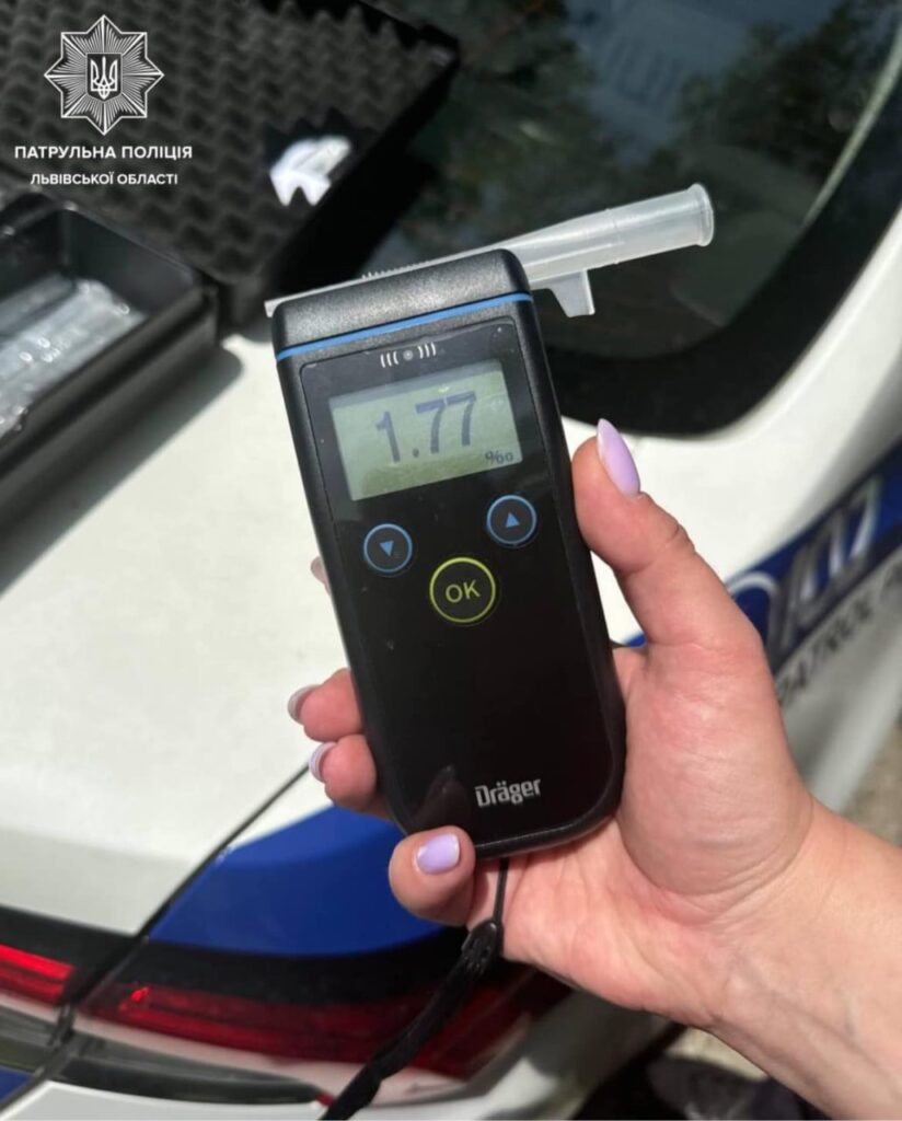 Водій погодився пройти перевірку за допомогою приладу Драгер. Результат — 1,77 проміле.