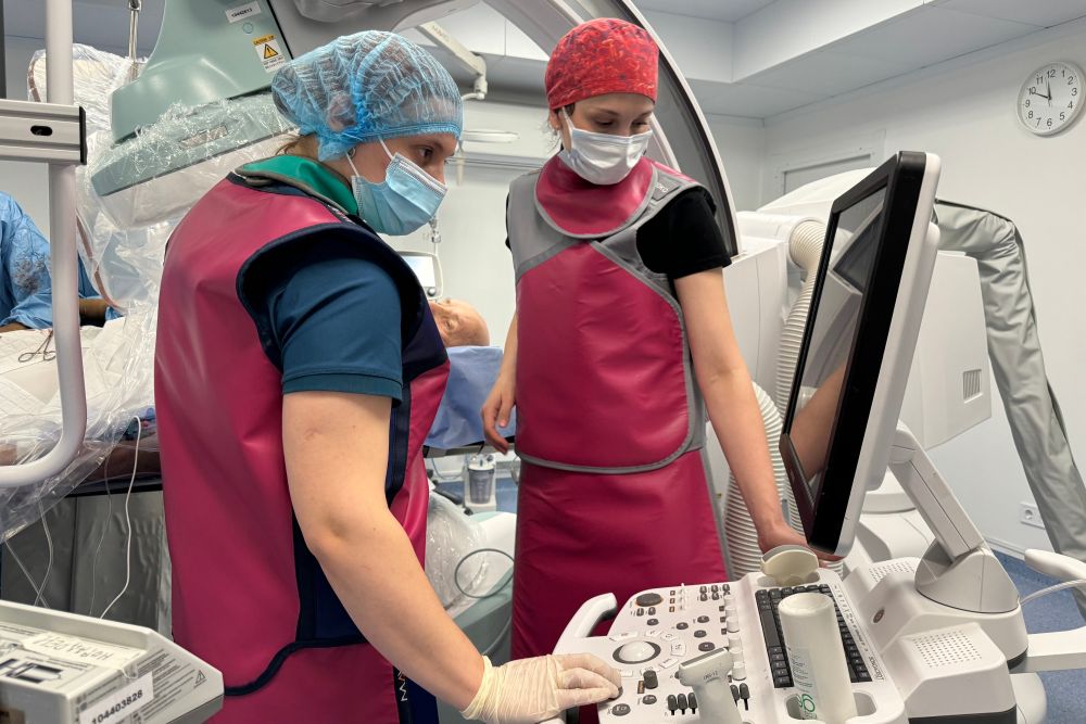 «В обох пацієнтів був критичний стеноз аортального клапану. Вони важкі, фракція викиду низька, плюс похилий вік – все це вказувало на те, що відкрита операція неможлива. Тож спільно ми вирішили встановити новий клапан для пацієнтів ендоваскулярним методом TAVI. Це була 21-ша і 22-га така операція в нашому медичному обʼєднанні», – розповідає Олександр Голуб, завідувач відділення інтервенційної радіології лікарні святого Луки.