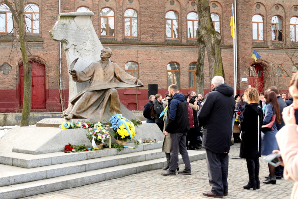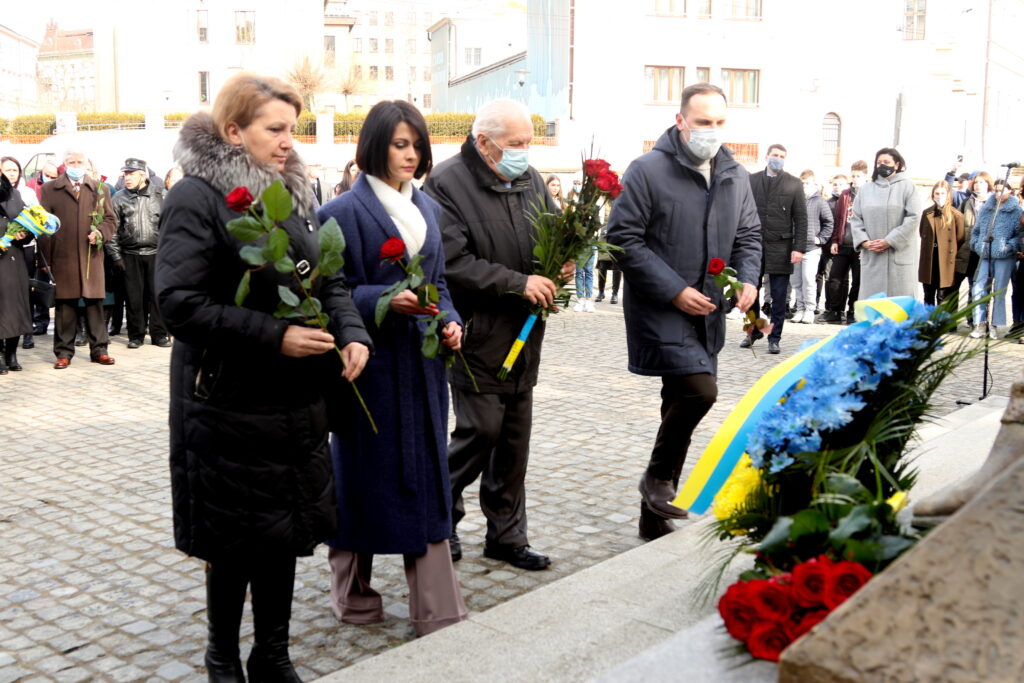 Усі присутні спільно помолились, поклали квіти до пам’ятника видатному українцю після чого відбулось імпровізоване віче із виконанням Гімну України.