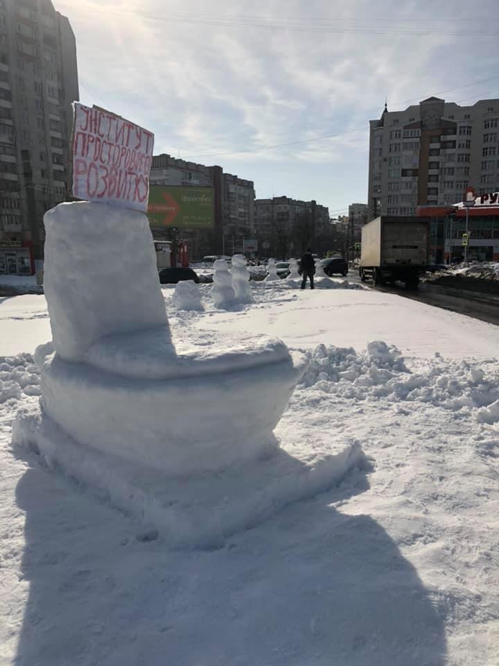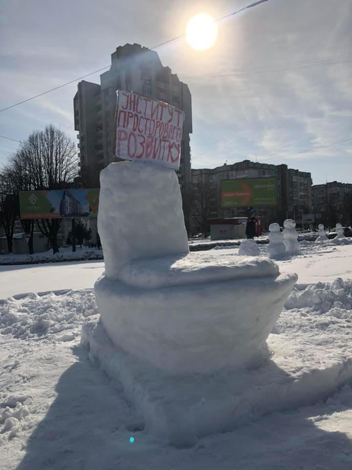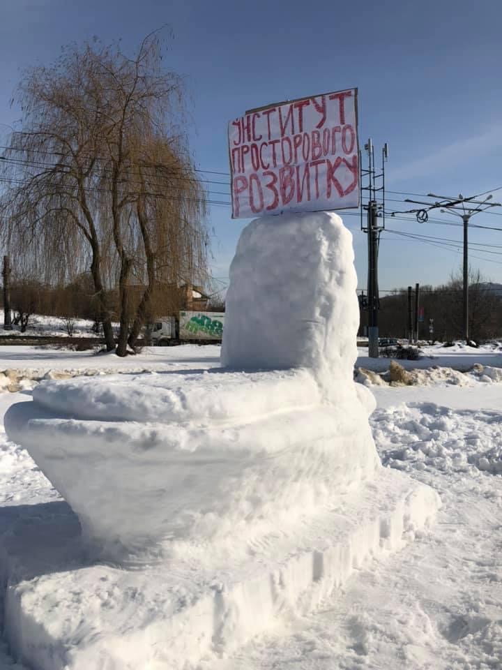 У Львові зі снігу встановили монумент Інституту просторового розвитку Шміда.