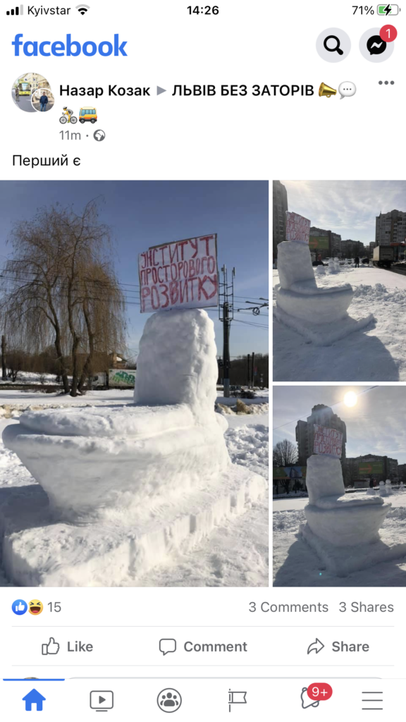 “Творчий колектив запрошує всіх охочих на свято проводу зими (і, сподіваємось, урбаністів разом з ними). Зустрічаємось в цю неділю 21 лютого о 11.00 на АЗС WOG біля “Острівця Шміда” (вул.Варшавська). З собою брати лопати, рукавиці, перезувне взуття. Буде можливість зліпити зі снігу свого улюбленого урбаніста”, – йдеться у повідомленні.